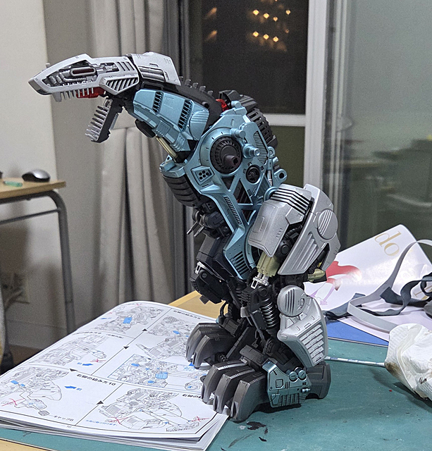 いやー。とにかくデカイ、結構重い。そしてパーツ数も意外とあって、久々の完成品としてのリハビリにはなかなかハードなブツではありました。