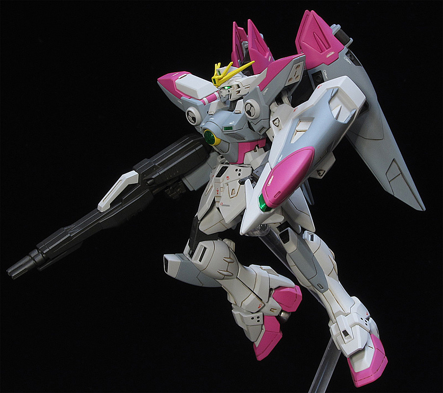 最初はこんなもん楽勝で三日もかからんやろとタカを括っていたのですが、思ってたよりパーツが細かかったり、よく考えたらこサイズのガンプラ(しかも少し小さめサイズのウイング系)を作るのなんて超久しぶりだったせいかやたら手間取り、今日の夕方にようやく完成しました。