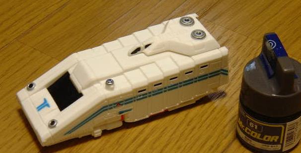 (成形色は本当は、クリヤーとクリヤーブルーなのですが、見易いようにサーフェイサーを吹いてあります)。